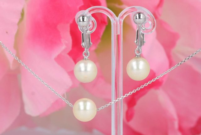 パールネックレスの珠は、糸通しの為、穴が貫通しています。そのまま直結のイヤリングやピアスにすると、正面に穴がきてしまい、格好が良くありません。